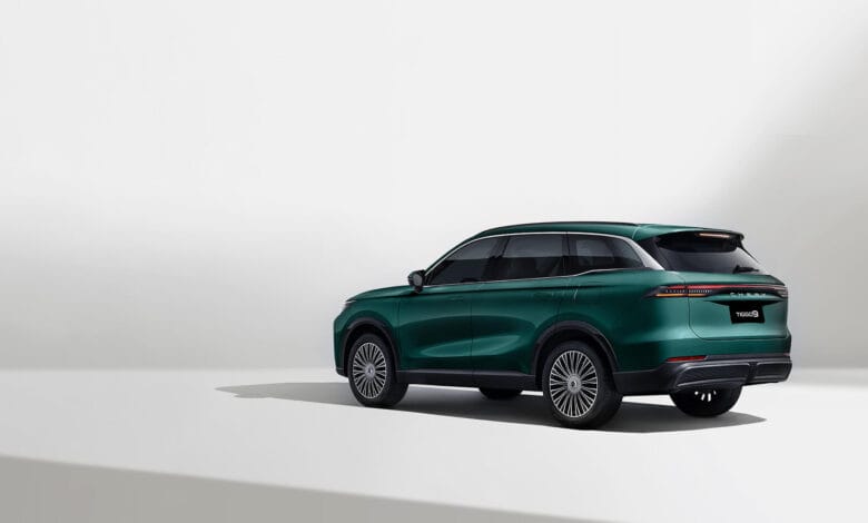 ويأتي الهيكل الخارجي بأبعاد مدروسة بعناية، تجمع بين الانسيابية والديناميكية، مع خطوط تصميم تبرز الطابع العصري للسيارة. كما تقف تيجو 9 على عجلات رياضية كبيرة بقياس 20 بوصة ذات تصميم متعدد الأضلاع، تمنحها ثباتًا مميزًا وشكلًا جذابًا. وتكتمل عناصر الفخامة من خلال فتحة سقف بانورامية قابلة للفتح، مدعومة بستارة كهربائية داخلية، لتوفير تجربة قيادة تجمع بين التهوية الطبيعية والإضاءة المحيطة بطابع راقٍ ومريح.