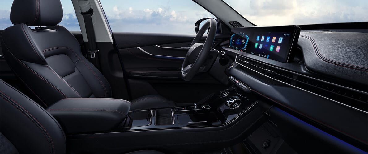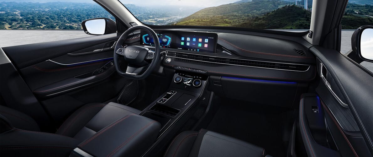 جاءت EXEED LX بمقصورة راقية تتكامل فيها الخامات الفاخرة مع التكنولوجيا الحديثة، وتشمل: